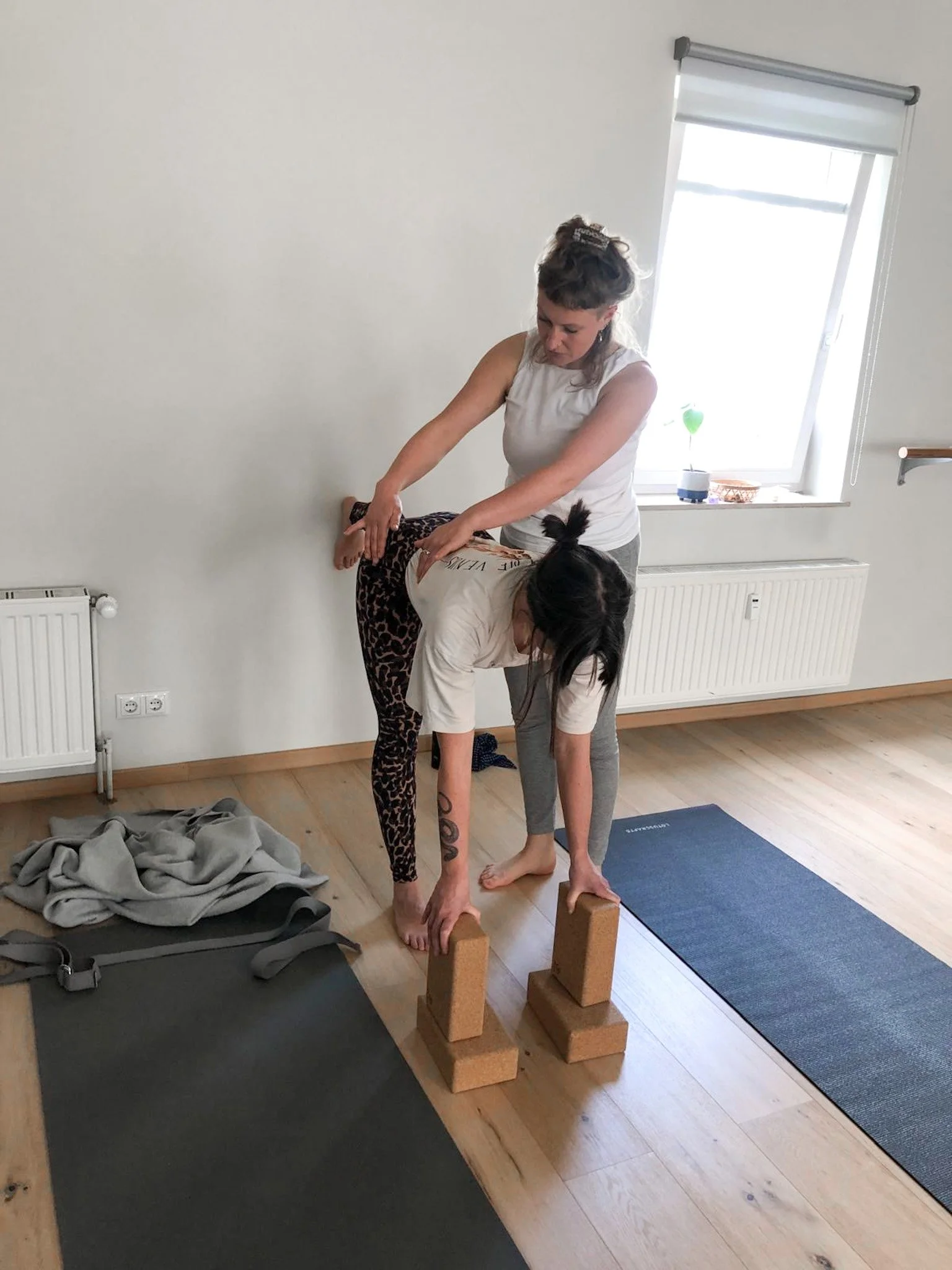 Im Vordergrund stehen vor allem das Beobachten, Erkennen und Anpassen von Übungen an einzelne Teilnehmer*innen, sowie das Vertiefen des eigenen Körperverständnisses und der Praxis.